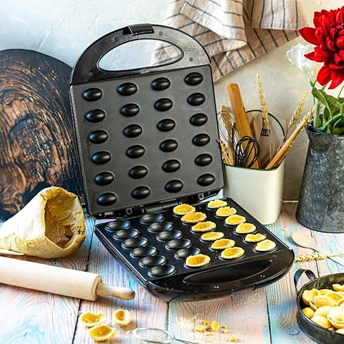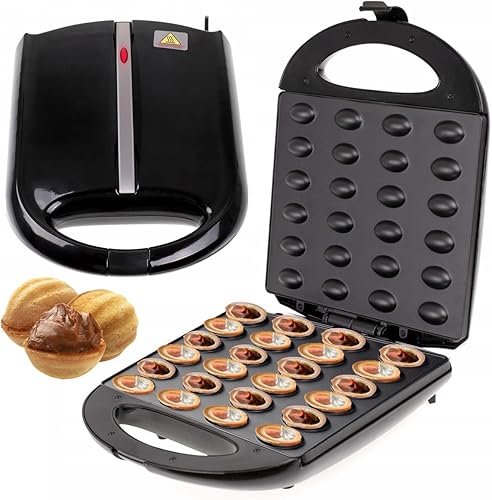Machine à noix 1600W, Machine à biscuits, revêtement antiadhésif, cuisson 24 moitiés en même temps, protection contre la surchauffe, arachides sucrées et salées, stockage vertical noir