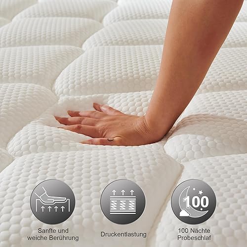 Twirest Matelas 120 x 200 cm, à ressorts ensachés (hauteur 20 cm), matelas orthopédique 7 zones avec mousse confortable, tissu à surface douce, matelas pour adultes, dureté moyenne (H3)