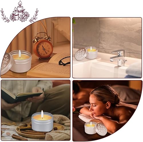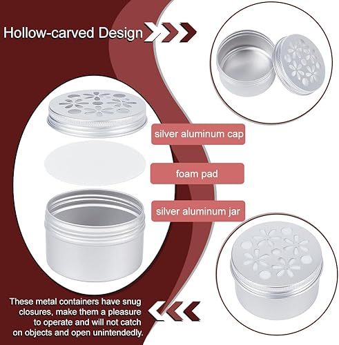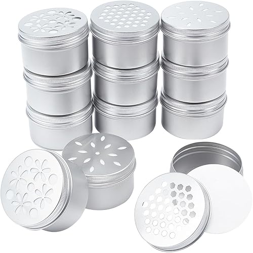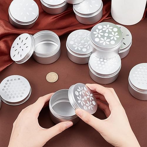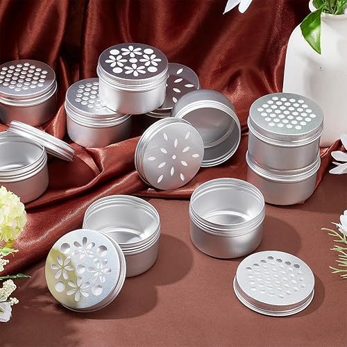 PH PandaHall 12pcs Boîtes en aluminium, 3 styles Tins métalliques vides ronds avec des couvercles creux Récipients d'épices rechargeables pour désraquage d'air d'aromathérapie Bougies, 7x4.25cm
