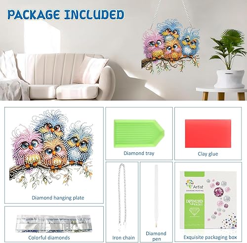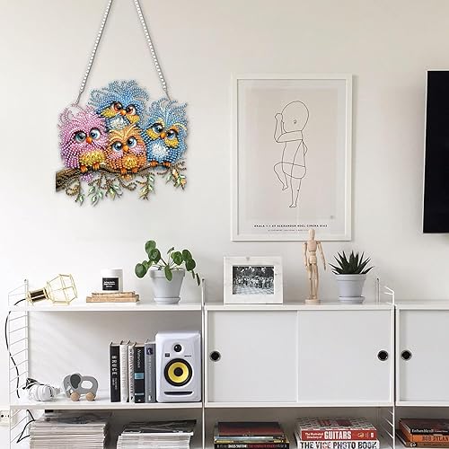 DOMROM Kit de peinture diamant à suspendre - Oiseaux - Forme spéciale - Strass - Kit de pendentif pour adultes et débutants - Décoration de jardin