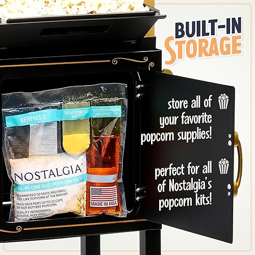 Nostalgia Machine à popcorn – Chariot professionnel avec bouilloire de 70,9 g pour jusqu'à 10 tasses – Machine à popcorn vintage style cinéma – Rouge