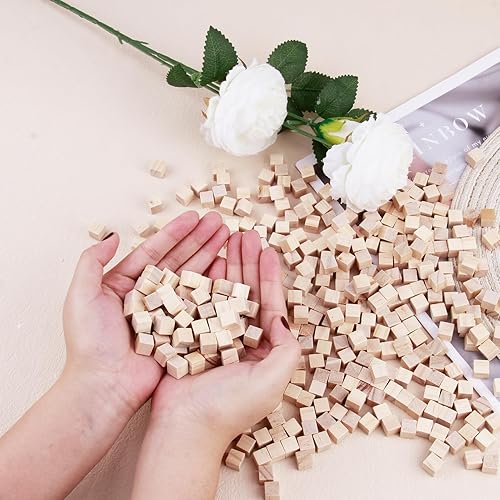 Lot de 400 Cubes Décoratifs en Bois de 10 mm, pour Décoration, Peinture et Artisanat, Petits Cubes Vierges pour DIY, Modélisme, Scrapbooking et Plus