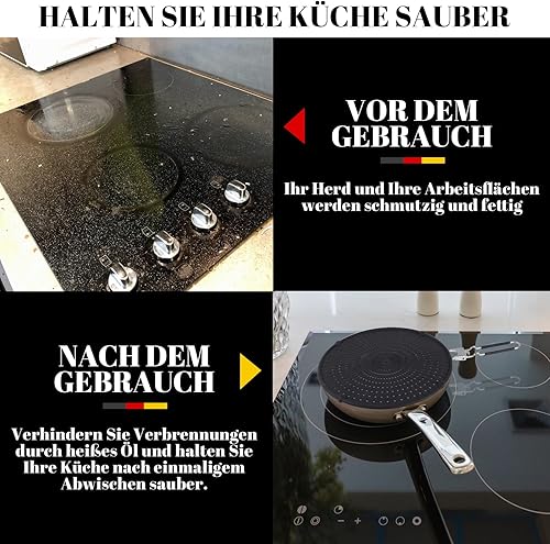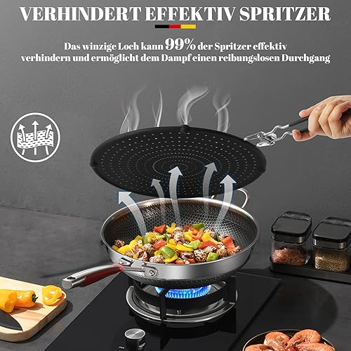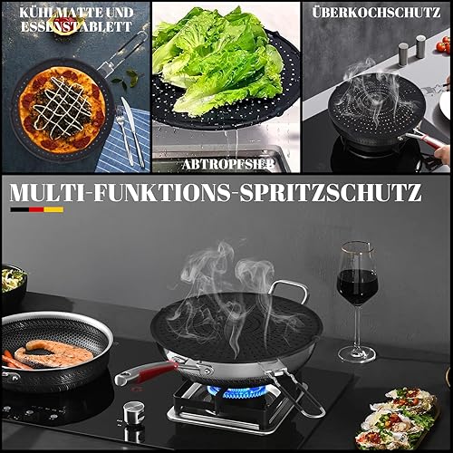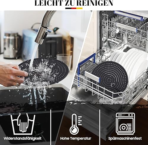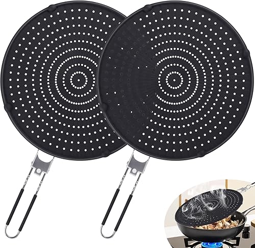 Couvercle Anti-éclaboussure poêles 32cm | 2 Pièces Protection Anti-éclaboussures Pliable en Silicone avec poignée Pliable, Résistant à la Chaleur et Passe au Lave-Vaisselle, Noir