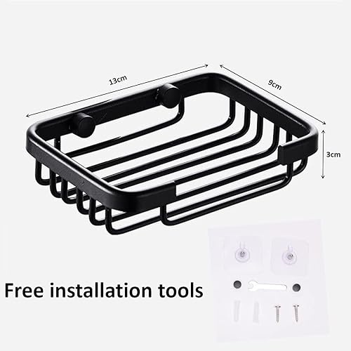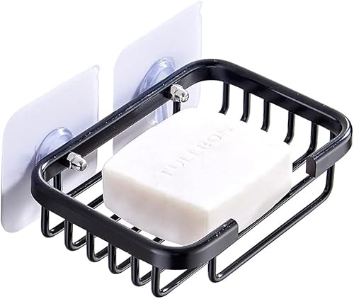 Porte-Savon Auto-adhésif Mural Filet à Savon Porte-Savon Noir égouttoir Porte-Savon Espace Aluminium boîte à Savon, Pas de Trous nécessaires