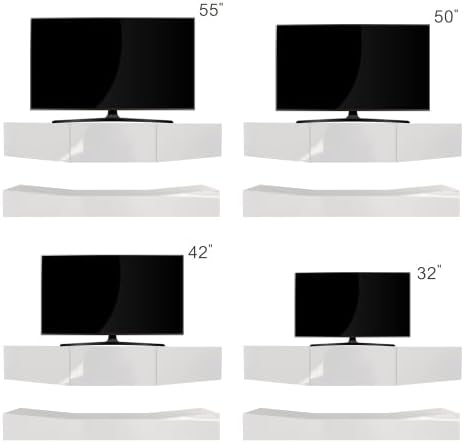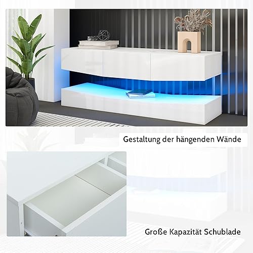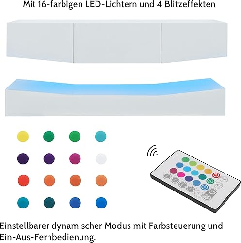 Meuble TV suspendu avec éclairage LED - Meuble TV suspendu - Support mural flottant - Centre de divertissement pour le salon et la maison - Blanc