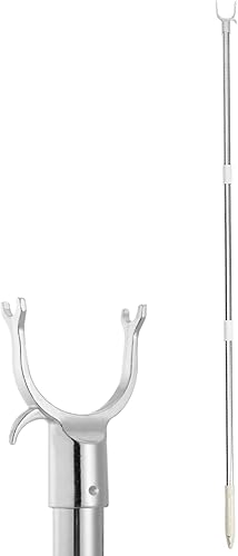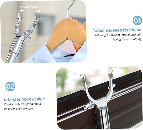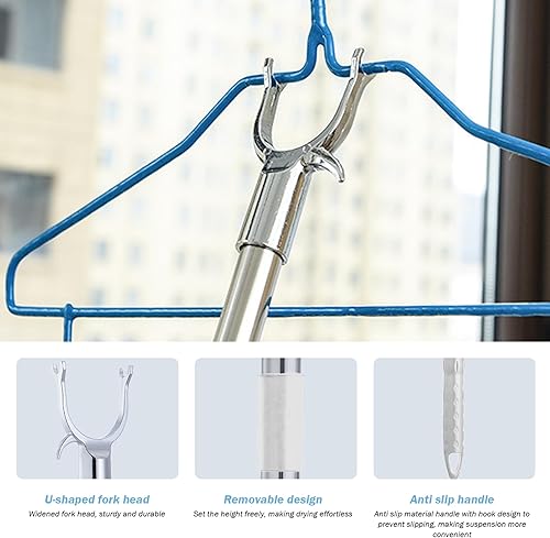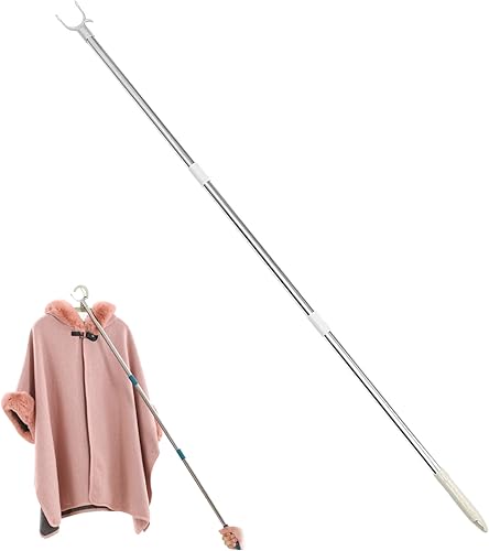 Wedhapy Tringle à Linge télescopique de 51 Pouces avec Crochet en Acier Inoxydable à Longue portée avec Crochet et poignée antidérapante pour Plafond étagère à vêtements