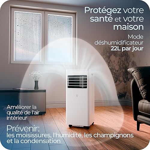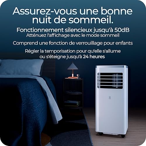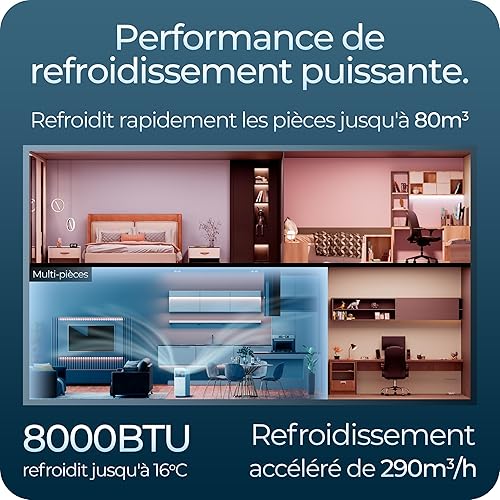 S-150 - Climatiseur Portable Avalla 8000 BTU 4-en-1 : Clim, Déshumidificateur, Ventilateur, Mode Nuit - Silencieux 52dB, Télécommande, Écran Digital, Minuteur, Kit Fenêtre, 80m³