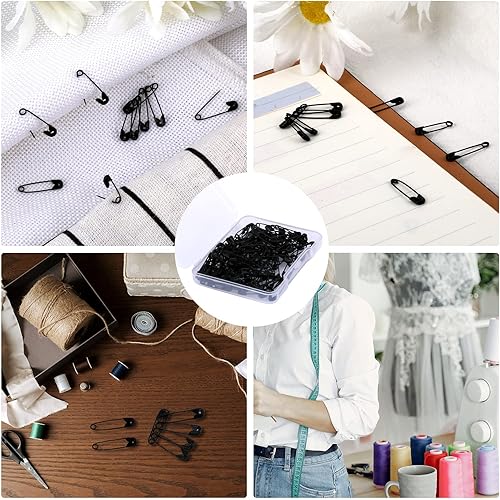 AIEX 120 Pièces Épingles de Sûreté, 19mm Mini Épingles à Nourrice Épingles de Sûreté pour Vêtements Couture Artisanat Fabrication de Bijoux (Noir)