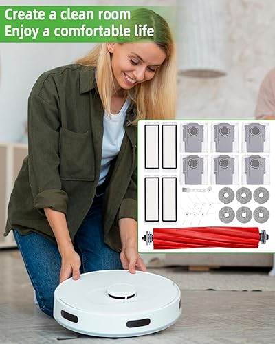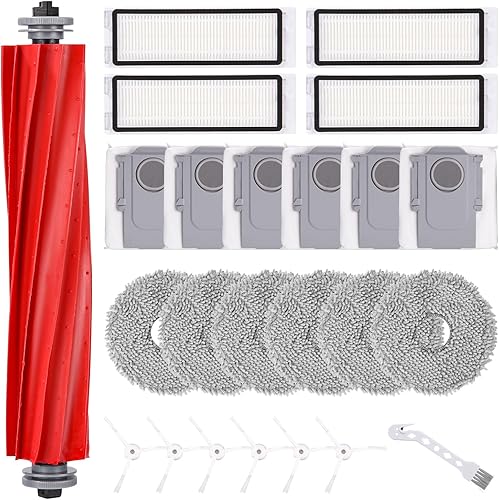 Kit Pièces d'rechange Compatible pour Roborock Q Revo S/Q Revo MaxV/Q Revo PRO,1 Brosse Principale, 6 Sacs à Poussière, 6 Chiffons, 6 Brosses Latérales, 4 Filtres, 1 Petite Brosse