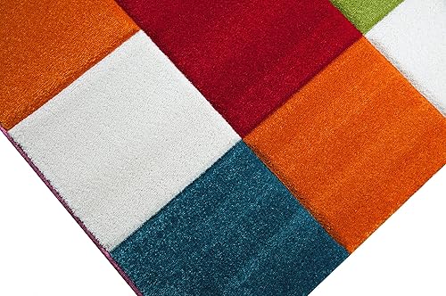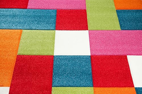 Enfants Jeu de Tapis Enfants Tapis Tapis Karo Motif Multicolor Rouge Turquoise Orange Crème Rose Vert Größe 80x150 cm