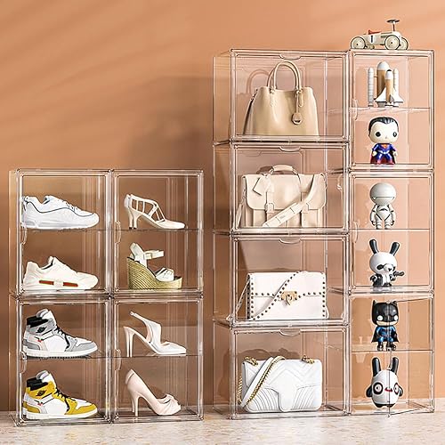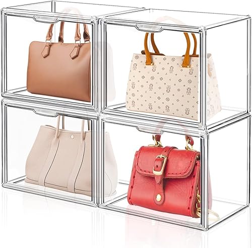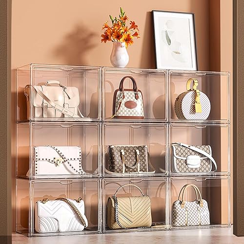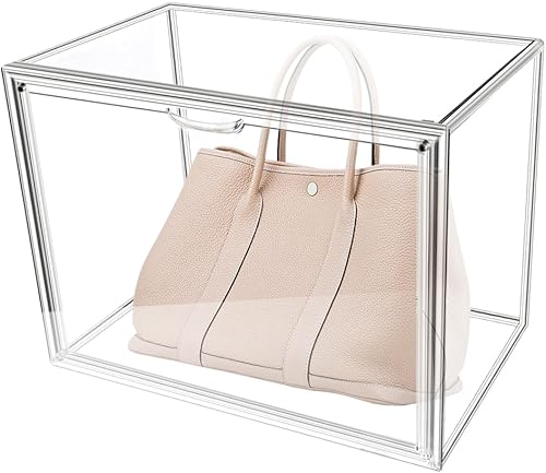 PLECUPE Lot de 1 Boite rangement empilables en acrylique, Boite acrylique pour sac à main, Vitrine acrylique transparente, Vitrine pour Rangement sac à main, livres, jouets, chaussures.