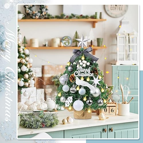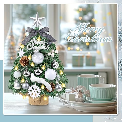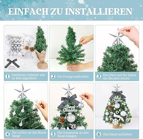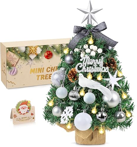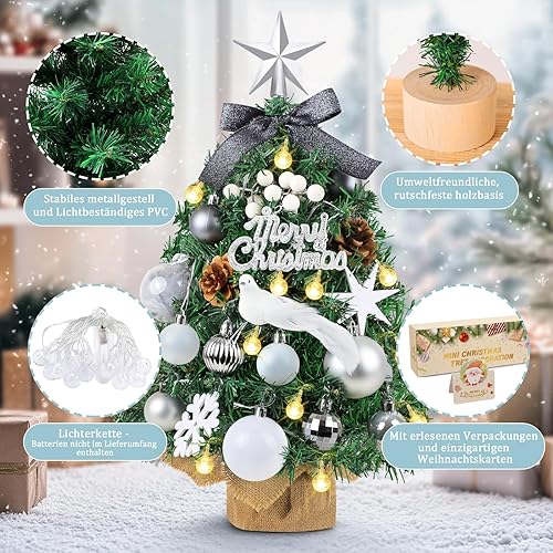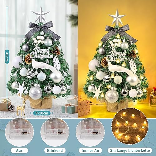 Petit Sapin de Noel,Mini Sapin de Noel Lumineux LED 45cm,Realiste Petit Sapin de Noël Décoré Artificiel,Petite Arbre de Noel Deco Table utilisé pour Décoration de Noël Table(Rouge Vert)