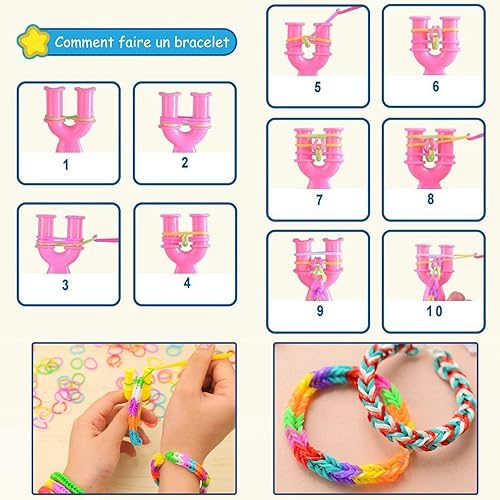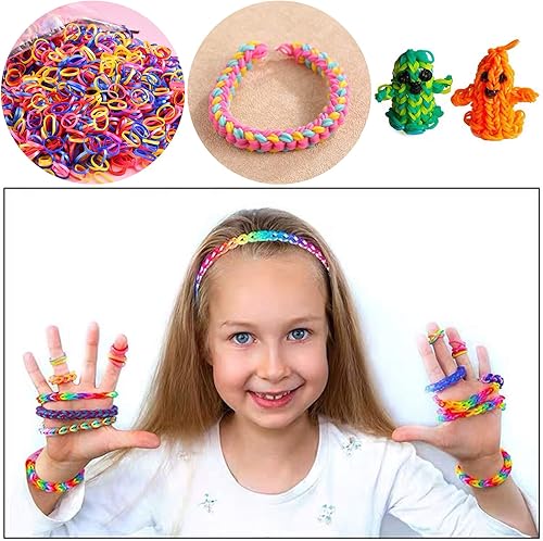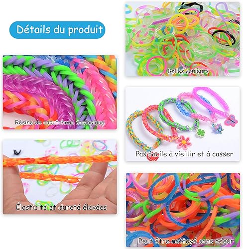 VEGCOO 1600pcs Kit Bracelet Elastiques Fille pour DIY Création de Bijoux,Avec outil à Tricoter