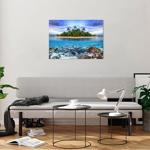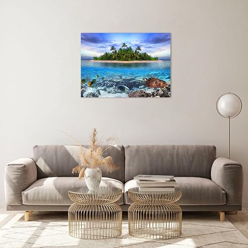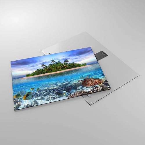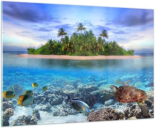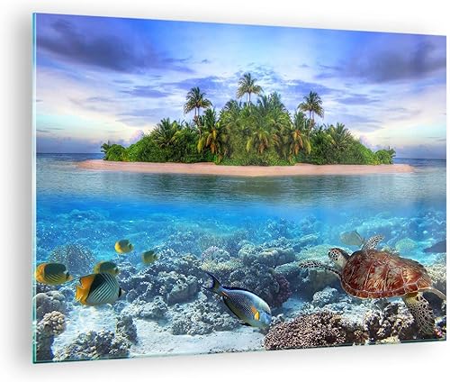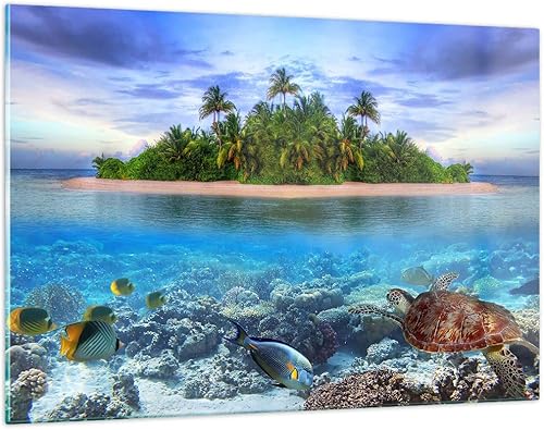 Deco Cadre Salon Plage lagune eau océan Moderne Impression sur Verre 120x80cm Image Tableau en Verre Decoration Murale Chambre Horizontal Art Grand XXL Tableaux Decoratifs Muraux GAA120x80-2686
