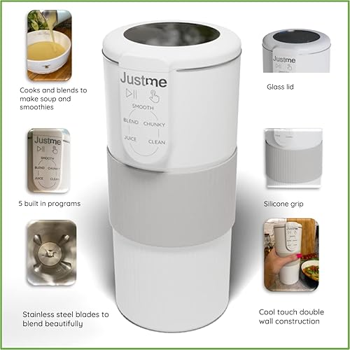 JustMe. La plus petite machine à soupe, les plus grands résultats. Machine à soupes et mélangeur à smoothie. Auto-nettoyage. Blanc. 5 programmes. Cuisine saine et facile. Léger. Version européenne