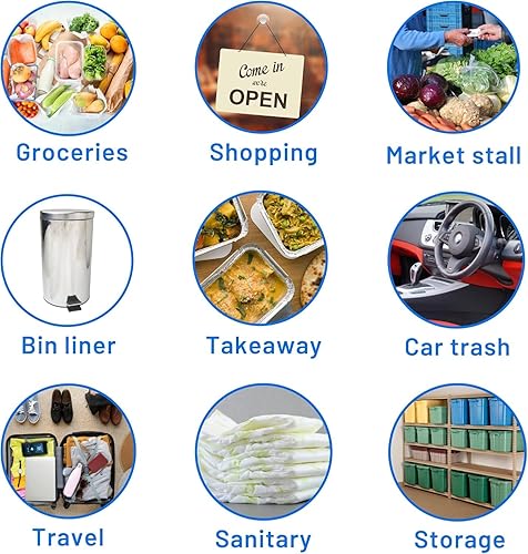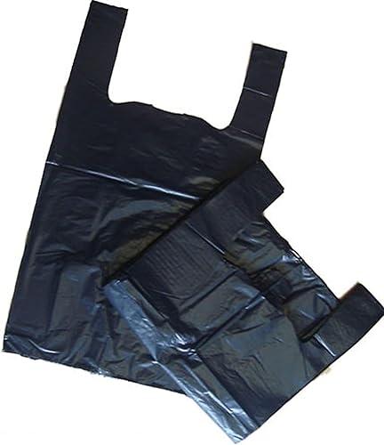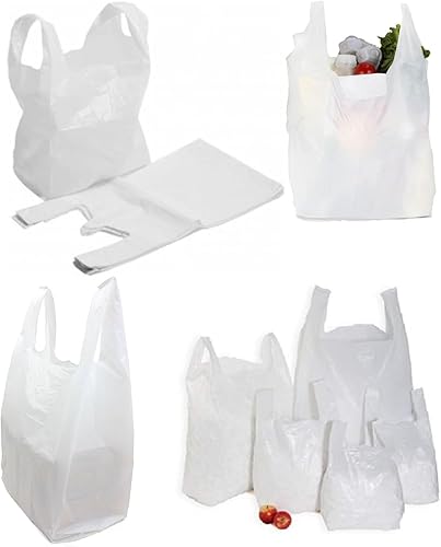 Dealonic Lot de 100 grands sacs de transport réutilisables en plastique avec poignées robustes Idéal pour les courses, le rangement de la cuisine et les stands de nourriture, blanc, 11''x17''x21''