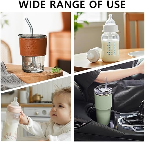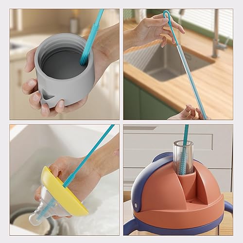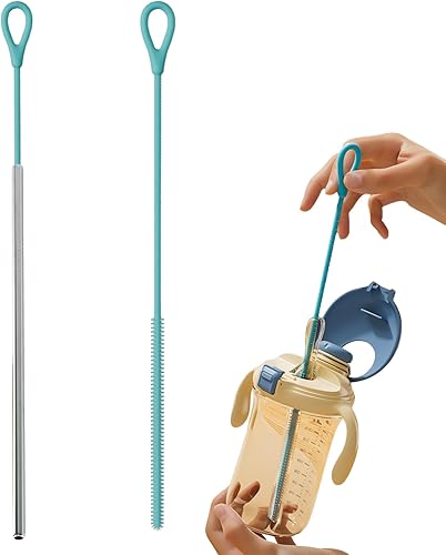 2X Nettoyeur De Pailles À Brosse Réutilisable,Goupillon Paille Brosses De Nettoyage Extra Longues avec Long Manche,Anti Dérapant Écailleur en Silicone pour Bouteille,Éprouvettes,Tasses,Biberon,25 Cm