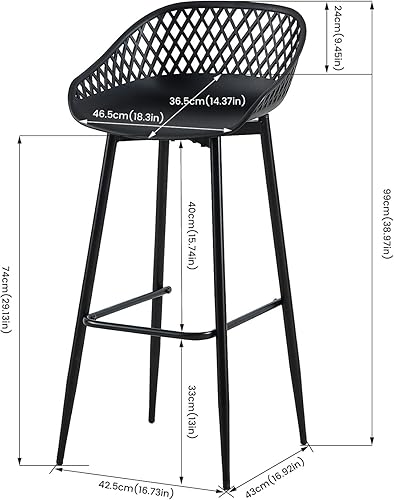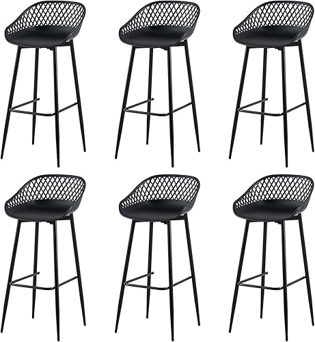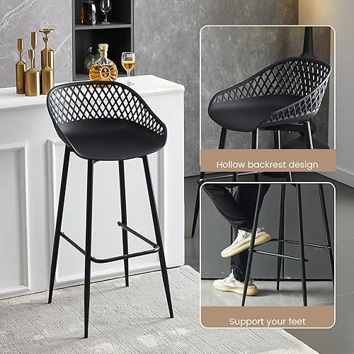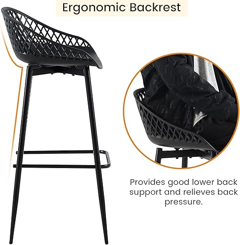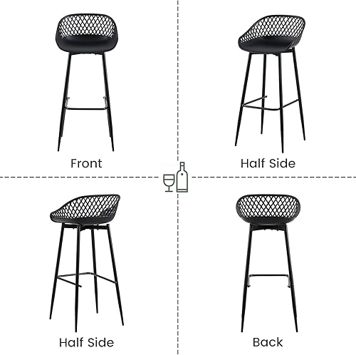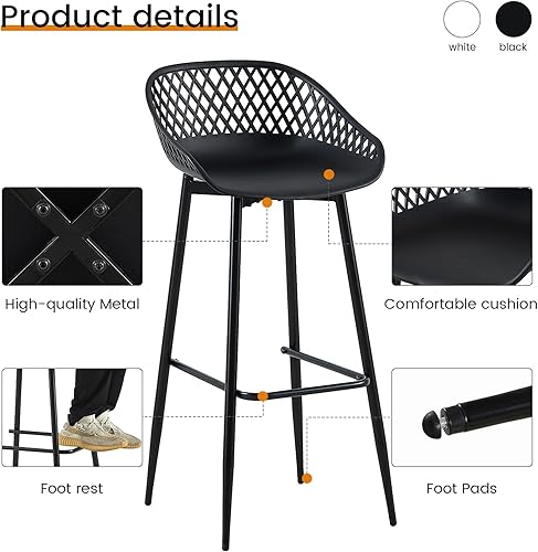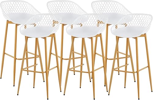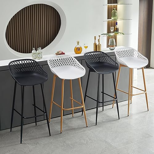 buybyroom Chaise de Bar Lot de 4, Tabouret Bar Chaise Haute pour Cuisine, Îlot Central, et Extérieur, Tabouret Haut avec Dossier et Pieds en Métal, Hauteur Assise 74 cm, Blanc