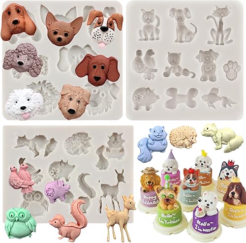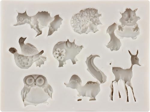 MYPRACS Lot De 3 Moules En Silicone En Forme D'animaux De La Forêt Chat Chien Écureuil Hérisson Hibou Oiseau Fondant Pour Décoration De Gâteaux Cupcakes Bonbons Chocolat Pâte À Gomme Argile Polymère