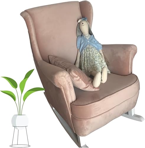 MartHome Fauteuil à Bascule Salon Relaxant - Chaise d'Allaitement Confortable pour Femmes Enceintes - Style Scandinave en Velours (Beige)