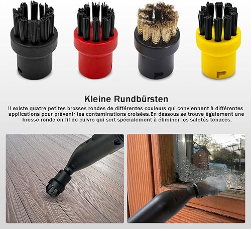 Magicbox Lot de 14 accessoires pour nettoyeur vapeur Kärcher SC1-SC5 | Brosses rondes, chiffons en microfibre, brosse à joints, buse manuelle | ABS et nylon