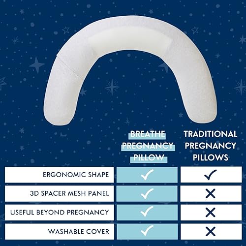 PurFlo Coussin de grossesse respirant | Oreiller de maternité révolutionnaire entièrement respirant avec housse luxueuse en jersey doux | À utiliser comme coussin de corps, coussin de jambes, coussin