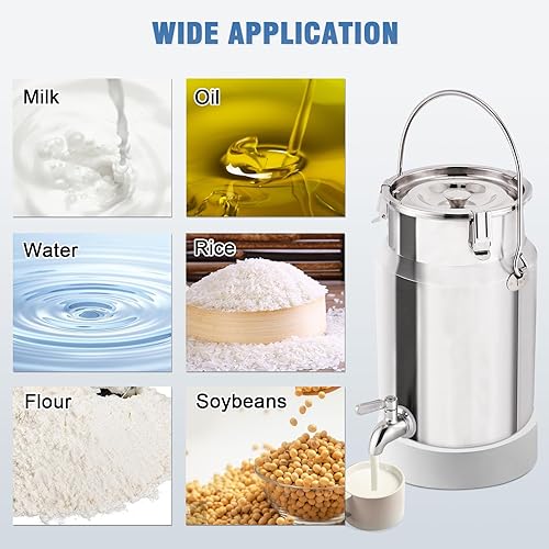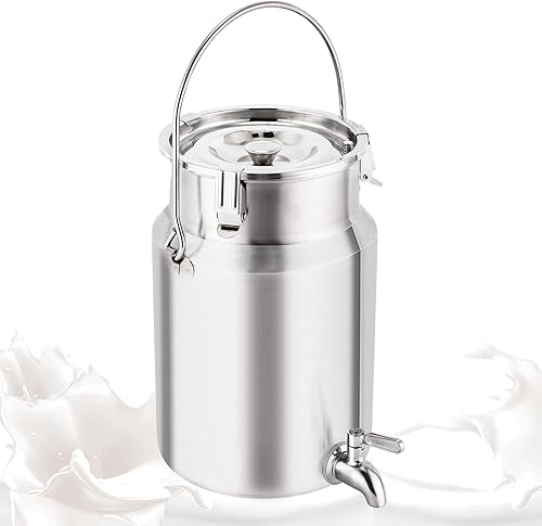 YUCHENGTECH Bidon à Lait en Acier Inoxydable 304 Seau de Transport de Lait 5L avec Couvercle et Robinet Scellés Pot à Lait Bidon à Huile/Lait Bidon à Lait Hermétique Seau à Lait en Acier Inoxydable