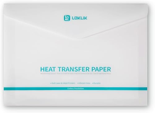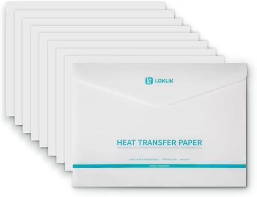 LOKLiK Papier de Transfert Thermique pour Tissus Foncés – 8 Feuilles A4 – Papier Transfert pour T-shirts, Sacs & Textiles – Impression Jet d'Encre – Facile à Appliquer avec Presse à Chaleur