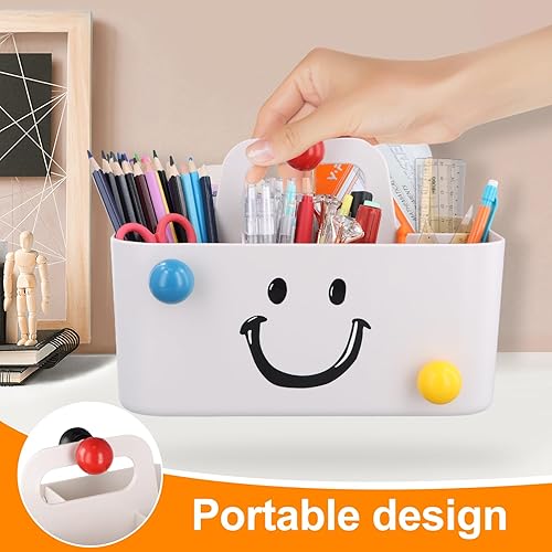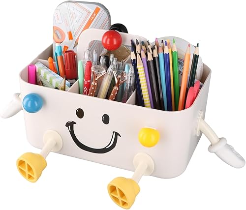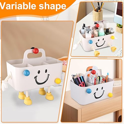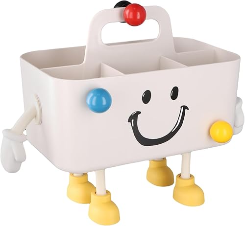 Caddy de Rangement en Plastique, Caddy à Crayon Bureau Enfant avec 3D Mains et Pieds Auto-adhésif, Panier de Rangement Portable avec Poignée, Petit de Organisateur de Bureau, Panier de Maquillage