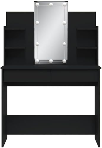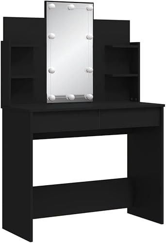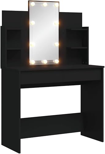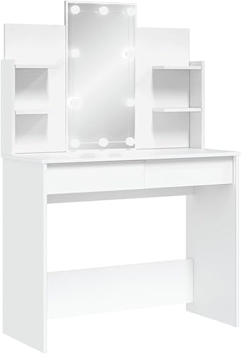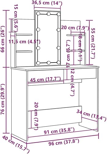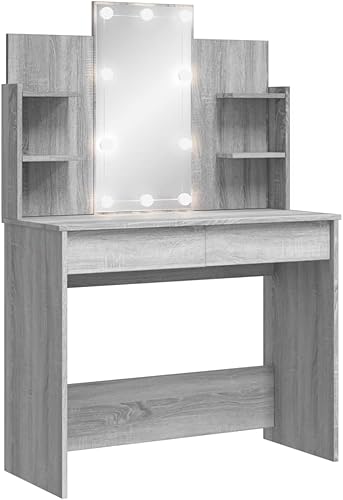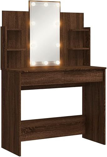 vidaXL Coiffeuse avec Lumières LED, Table de Maquillage avec 2 Tiroirs et 4 Étagères, Table Cosmétique avec Miroir Chambre, Moderne, Chêne Sonoma