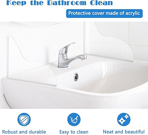 Lot de 2 protections anti-éclaboussures autocollantes en acrylique pour douche et baignoire, empêchent les fuites d'eau et protègent la salle de bain contre les éclaboussures (transparent)