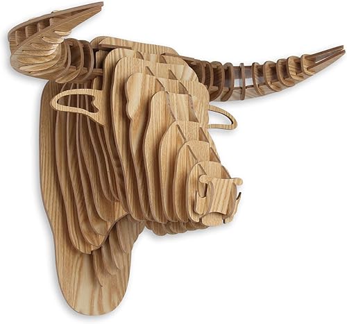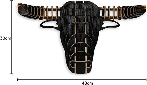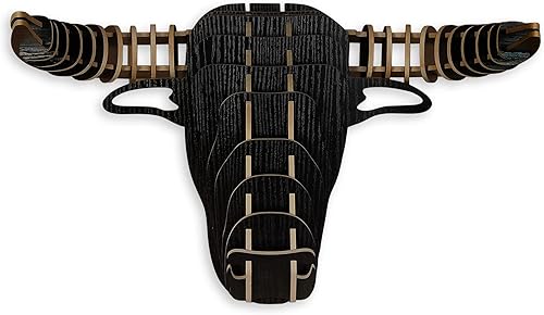 ADM 'Taureau' - Puzzle 3D en MDF Coloris Noir Motif tête de Taureau, trophée décoratif à Suspendre au Mur, très Facile à Assembler - Noir - H36 cm