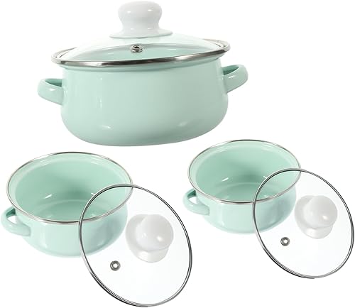 RORPOIR 3Pièces Casserole Émaillée Multi Usages avec Double Poignées Pot à Soupe Plat Marmite de Cuisine Émail Ustensile de Cuisine Pratique pour Cuisiner