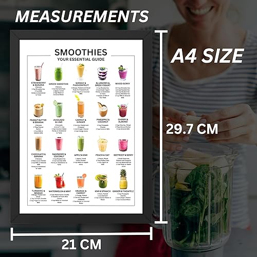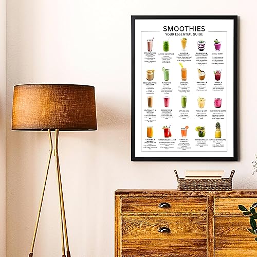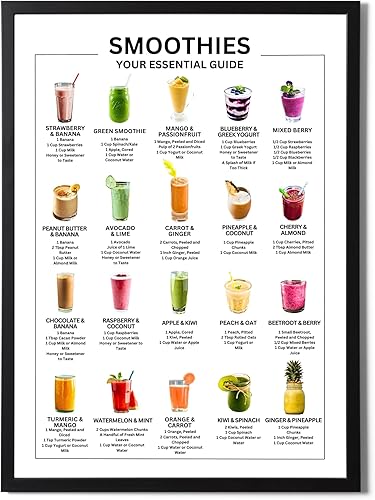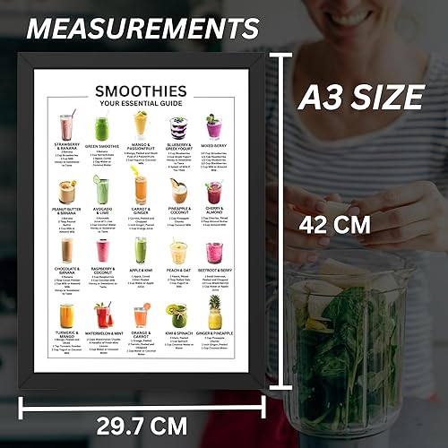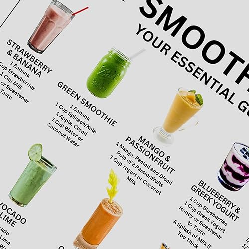 Poster Smoothies Your Essential Guide – Top 20 des recettes de smoothies avec images – Décoration murale de cuisine (impression A3 uniquement)