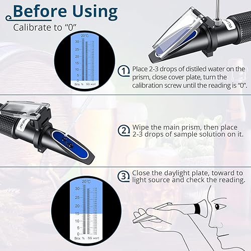 ALLmeter Réfractomètre de bière 0-32% Brix et Gravité Spécifique 1.000-1.130 SG avec ATC pour détecter Le moût Non Fermenté, Brassage de bière Maison Hydromel Mead