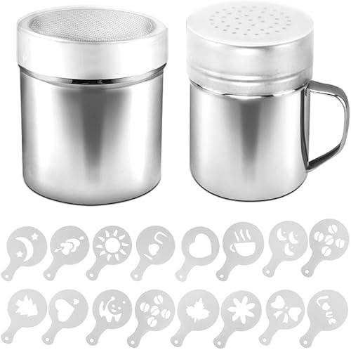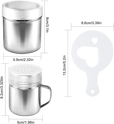 Aifuda - Shaker en acier inoxydable avec couvercle doseur à trous ou à mailles fines, pour poudres, café, cappuccino, café, café, café, café, cuisine, préparation de gâteaux