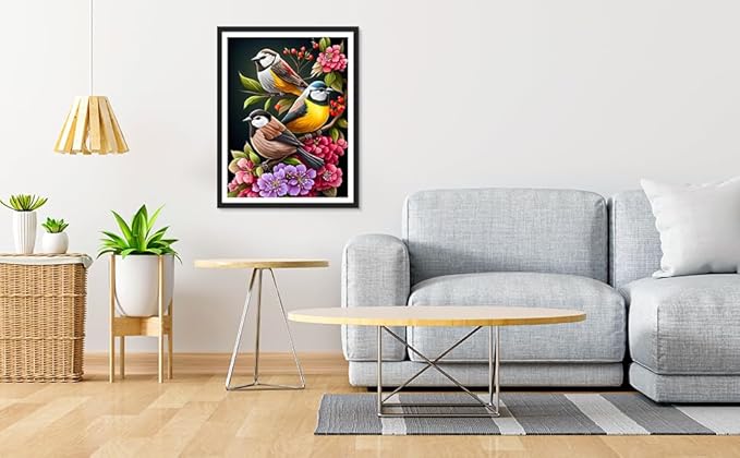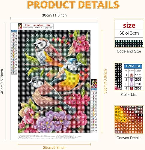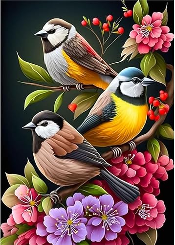 CEOVR Oiseaux Peinture Diamant Adulte,5D Diamant Painting Adulte Animaux et Fleurs Kit Diamond Painting Enfant,30x40 cm Diamond Painting Kit Complet,Cadeau pour la Famille