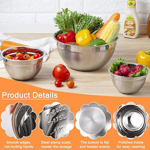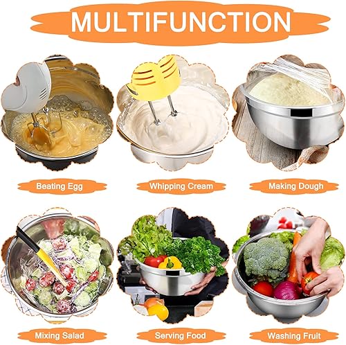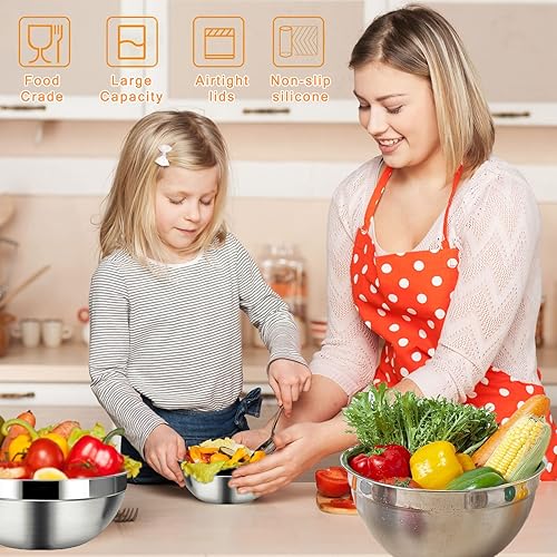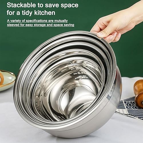 SaiXuan Lot de 5 Bol Acier Inoxydable avec Coloré Couvercles,Bol À Soupe, Saladier,Bol à Céréales, Bol À Dessert,Snack Bol,Bols à Mélanger Cuisson Essentiel Ustensiles de Cuisine