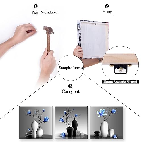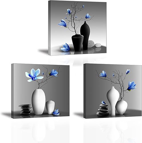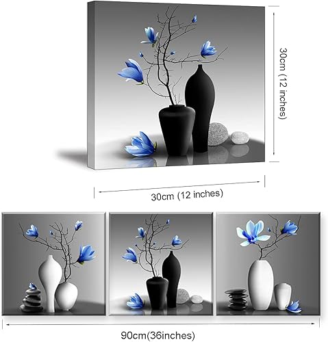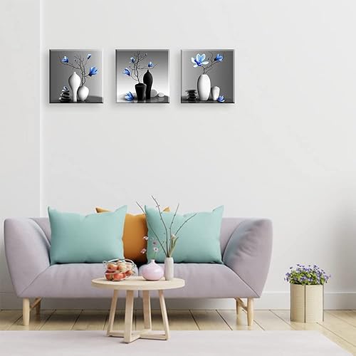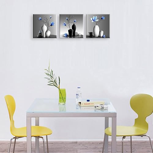 Piy Painting 3 Parties Orchidées Élégantes Impression sur Toile Plantes dans Un Vase Fleur Photo Tableau Tendue sur Châssis en Bois Prêt Suspendu Art Déco Murale pour Salle de Yoga Salon 30x30CM
