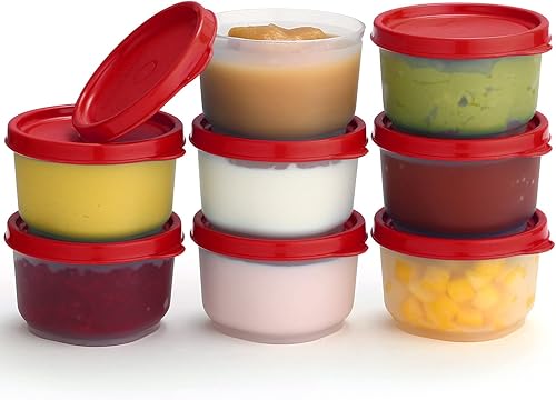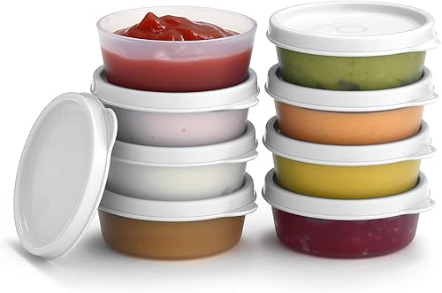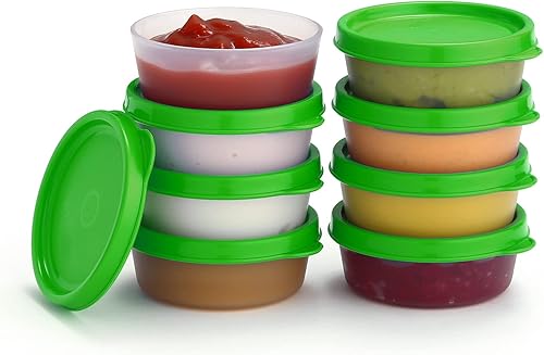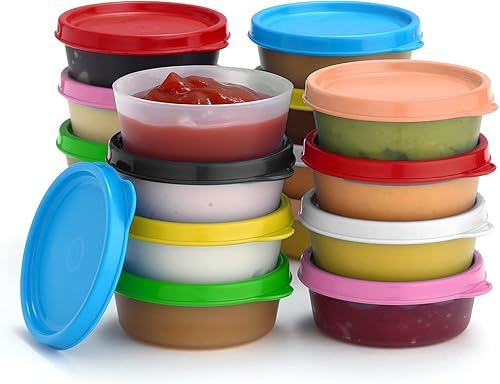 Lot de 8 récipients à condiments avec couvercles - 65,2 g - Pour vinaigrette - Petits récipients de stockage avec couvercles - Gobelets à sauce anti-fuite réutilisables en plastique sans BPA pour