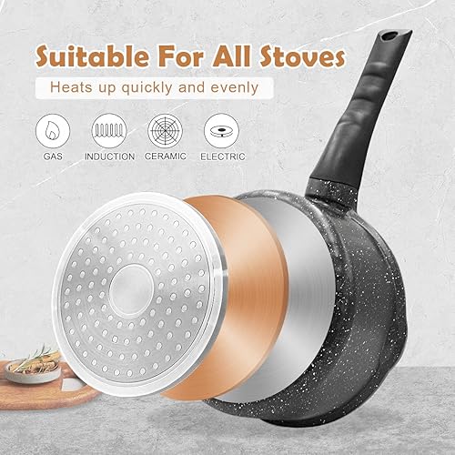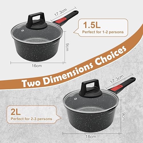 Bobikuke Casserole à sauce 18cm Antiadhésif avec Poignée détachable, Résistant au four et au lave vaisselle, Tous Types de Cuisinières (noir)