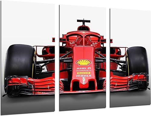 Tableau Moderne Photographique, Impression sur bois, Voiture de formule 1, Ferrari F1 SF71-H, Ferrari F1 2018, Sebastian Vettel, Kimi Raikkonen, 97 x 62 cm, ref. 27109