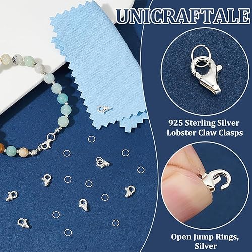 UNICRAFTALE 4pcs Fermoir Bracelet Fermoir Mousqueton Argent Sterling 925 Fermoirs à Bijoux Doré Fermoir Collier Connecteur Fermoir Pince de Homard avec 4Pcs anneaux de Jonction pour Bijoux Fabrication