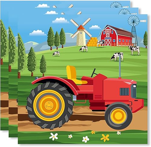 ParPix Lot de 20 serviettes de décoration pour fête d'anniversaire, motif de tracteur