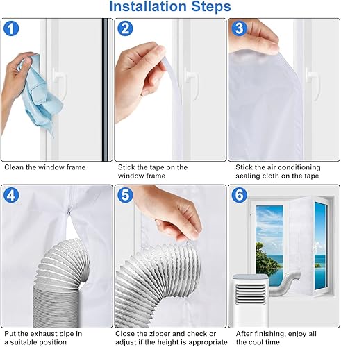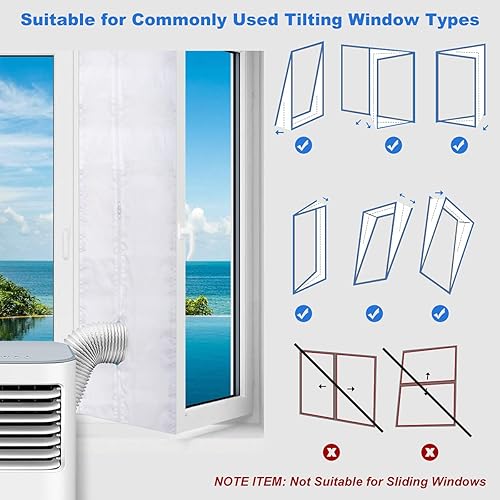 testyu Joint de fenêtre pour climatiseurs mobiles, climatiseurs, sèche-linge et sèche-linge à évacuation d'air, joint de fenêtre pour climatisation, Hot Air Stop avec fermeture éclair, pour fixation