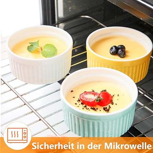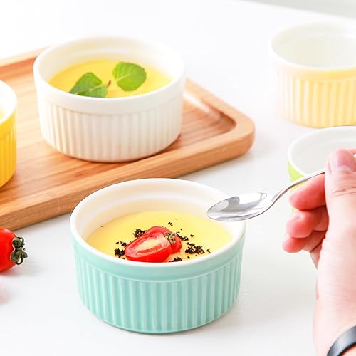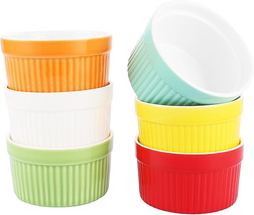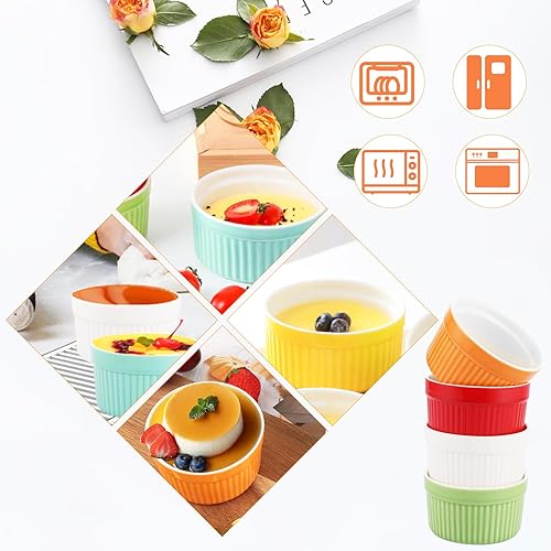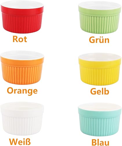 LDXDRU Lot de 12 ramequins à soufflé en céramique - Passent au four - 200 ml - Pour crème brûlée - Pour la cuisson et le dressage - Mini ramequins en porcelaine multicolore pour desserts, muffins,