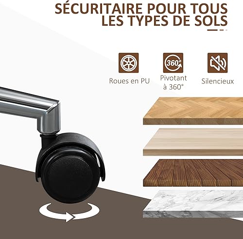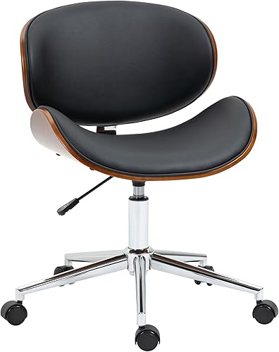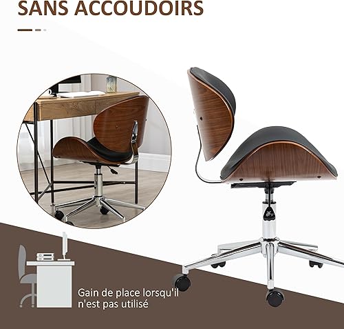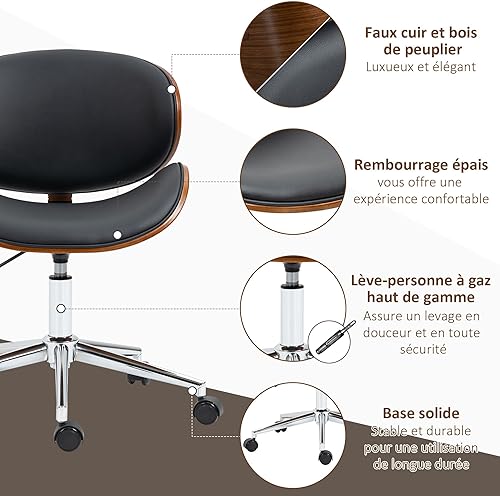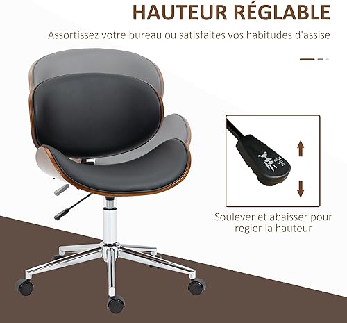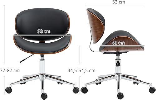 Vinsetto Chaise de Bureau Design Vintage Hauteur réglable siège pivotant 360° piètement chromé Bois peuplier revêtement synthétique 53L x 53P x 77-87H cm Noir