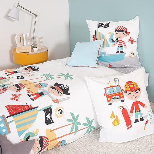 Drap Housse Enfant Pompier Pirate 100% Coton Bio* 90x190 cm