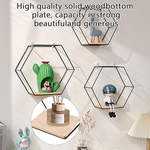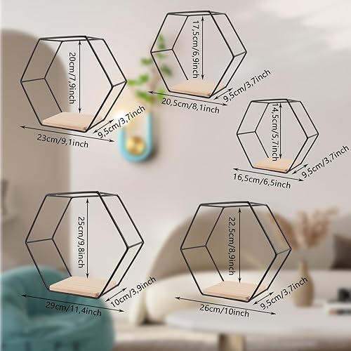 SHUESS Lot de 5 étagères murales hexagonales en métal noir pour décoration murale dans le salon, la chambre à coucher, la salle de bain, le café et l'hôtel