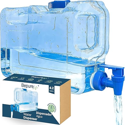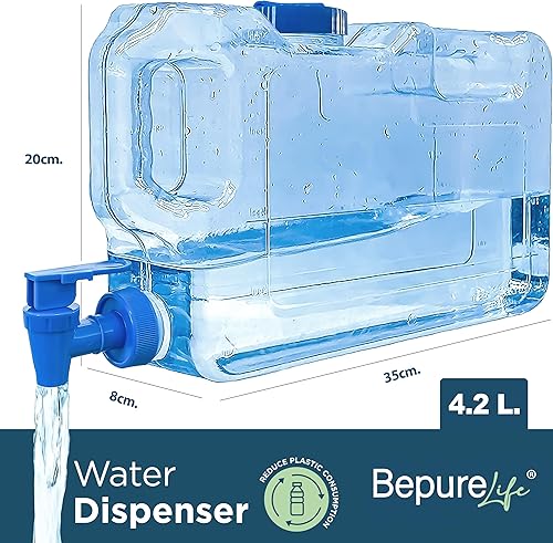 Distributeur d'eau Froide pour réfrigérateur.4,2 litres. Bouteille en Plastique PETG réutilisable avec Robinet. Fontaine d'eau, Boissons, Cocktails. Idéal pour Les plages, Le Camping, Les Bureaux…